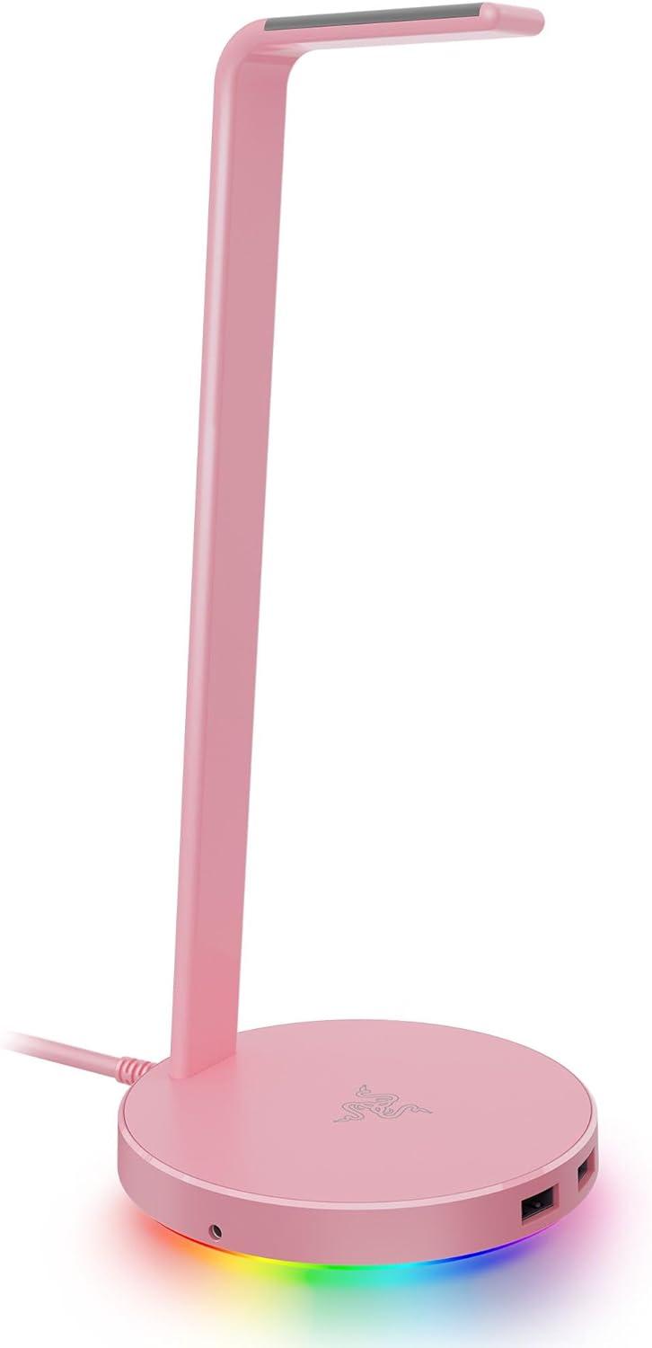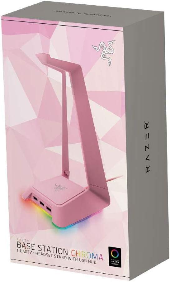 Razer Base Station V2 Chroma Headphone Headset Stand Holder: Chroma RGB Lighting - Taller Stand & Anti-Slip Ledge - USB Charging Ports - Anti-Slip Rubber Base - 3.5mm Port + Built-in DAC - Black(Quartz Pink)