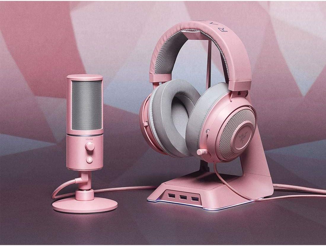 Razer Base Station V2 Chroma Headphone Headset Stand Holder: Chroma RGB Lighting – Taller Stand & Anti-Slip Ledge – USB Charging Ports – Anti-Slip Rubber Base – 3.5mm Port + Built-in DAC – Black(Quartz Pink)