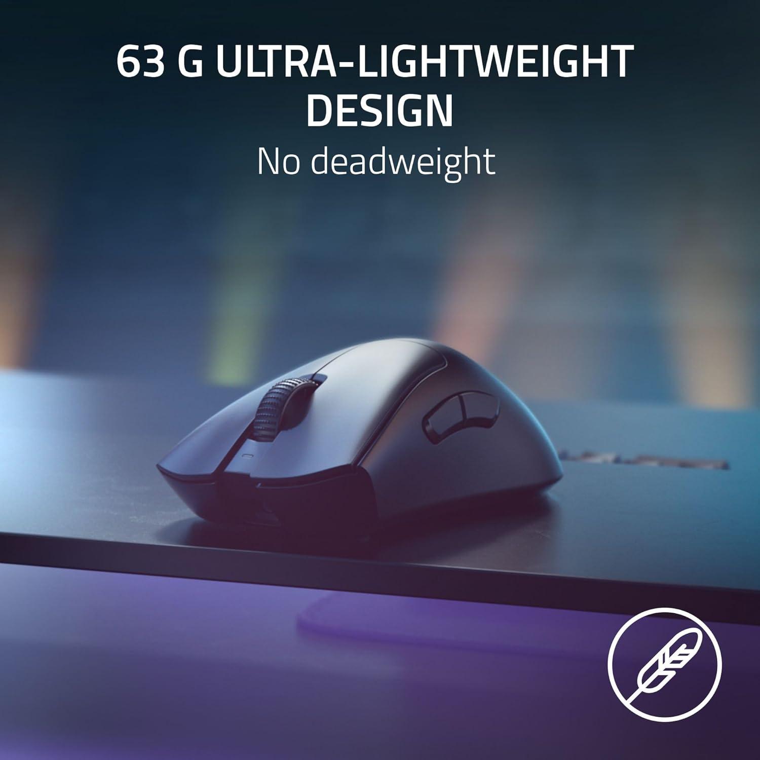 Engineered for pure performance, the Razer DeathAdder V3 Pro takes on a new shape. At just 63g, it's over 25% lighter than its predecessor, backed by a set of cutting-edge upgrades to push the limits of competitive play. Refined with feedback from top esports pros, its iconic ergonomic shape ensures unmatched comfort during long matches. Equipped with Razer™ Focus Pro 30K Optical Sensor, enjoy flawless tracking—even on glass—with intelligent functions for enhanced aim. Built for ultra-fast responsiveness, Razer™ Optical Mouse Switches Gen-3 offers an improved 90-million click span, 0.2ms actuation, and zero double-click issues. Stay ahead with Razer™ HyperSpeed Wireless—25% faster than other wireless tech for low-latency, stable performance even in crowded environments. Enjoy up to 90 hours of play on a single charge, powered by a highly efficient battery and recharged via USB Type C. The DeathAdder V3 Pro is your edge in competitive play—light, fast, and built to win.