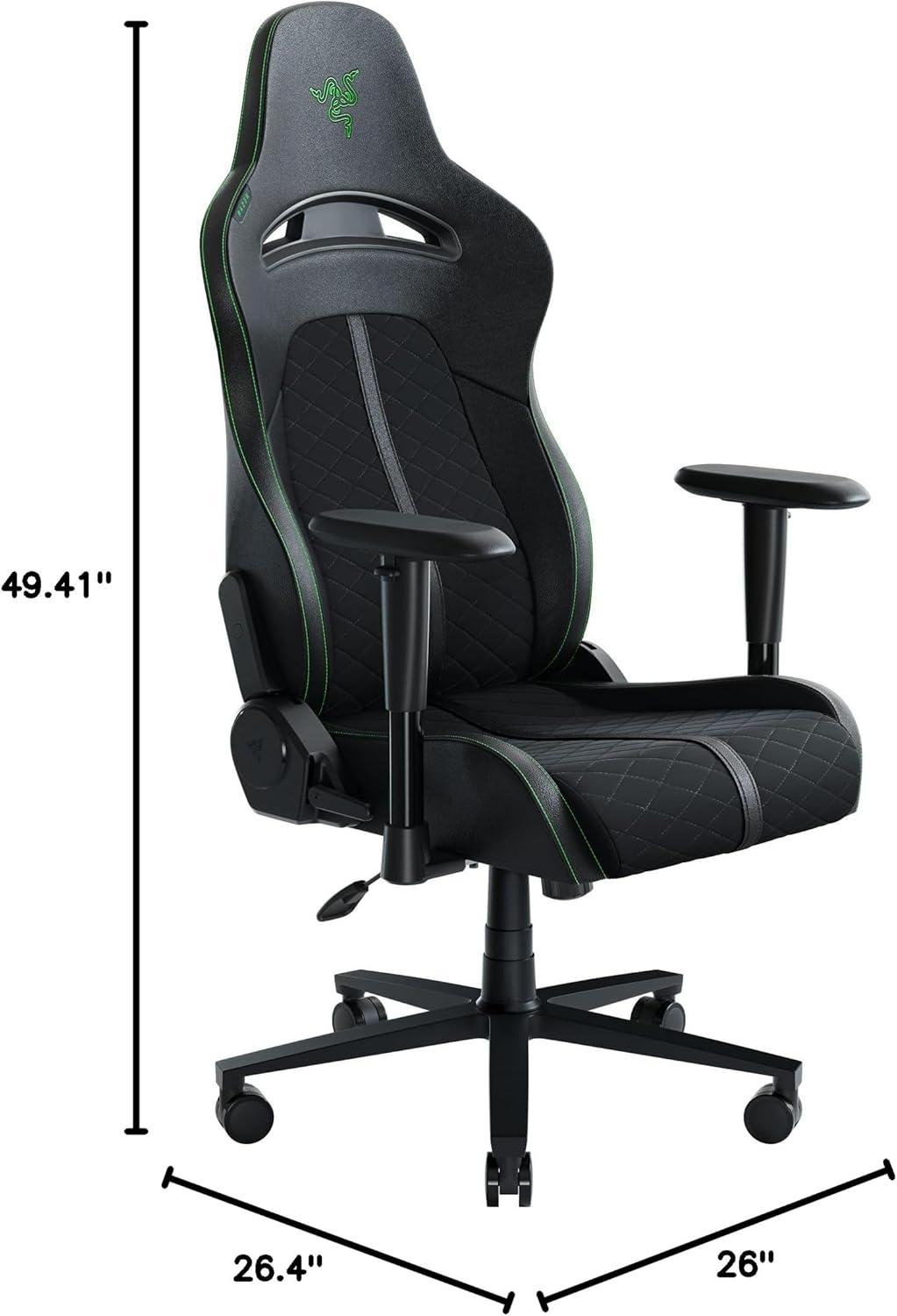 Razer Enki X Essential Gaming Chair: All-Day Comfort - Built-in Lumbar Arch - Optimized Cushion Density - Dual-Textured, Eco-Friendly Synthetic Leather - Adjustable 152-degree Recline - Black(Black)