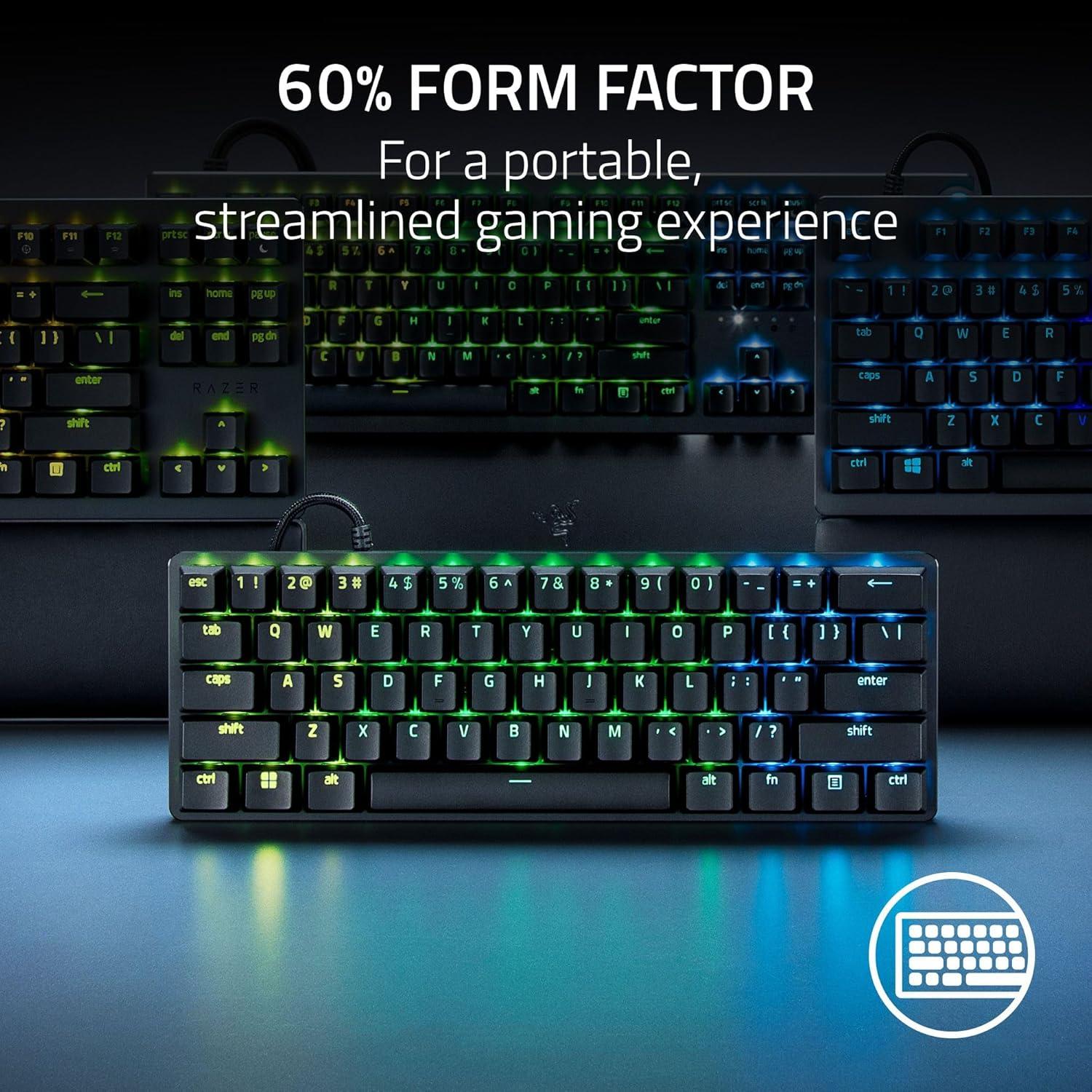 Razer Huntsman Mini 60% Gaming Keyboard: Clicky Optical Switches – Rapid Trigger Mode – Chroma RGB Lighting – PBT Keycaps – Onboard Memory – Snap Tap – Classic Black(Classic Black)