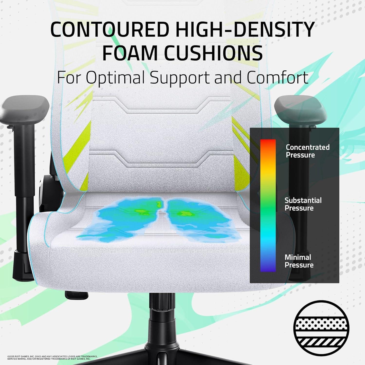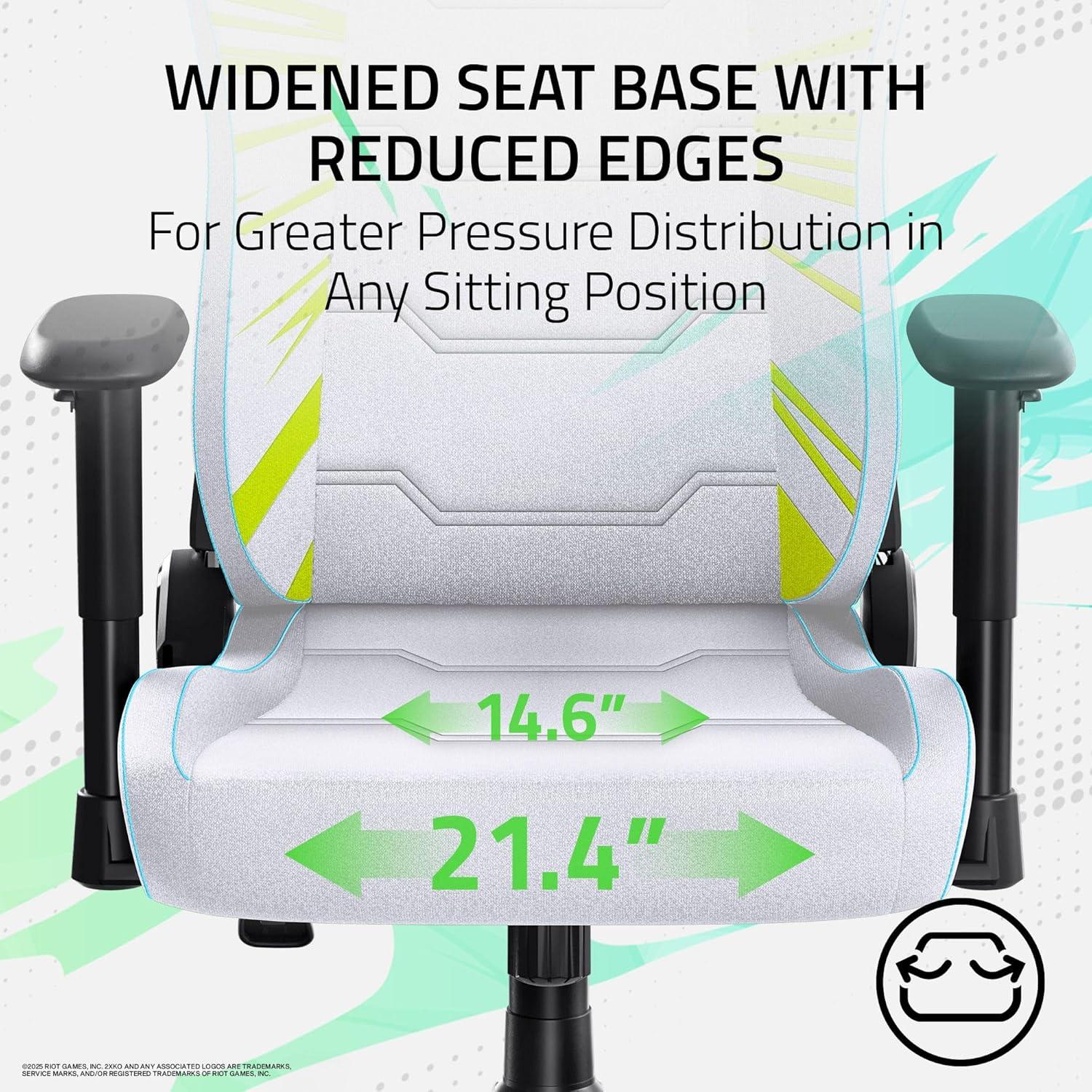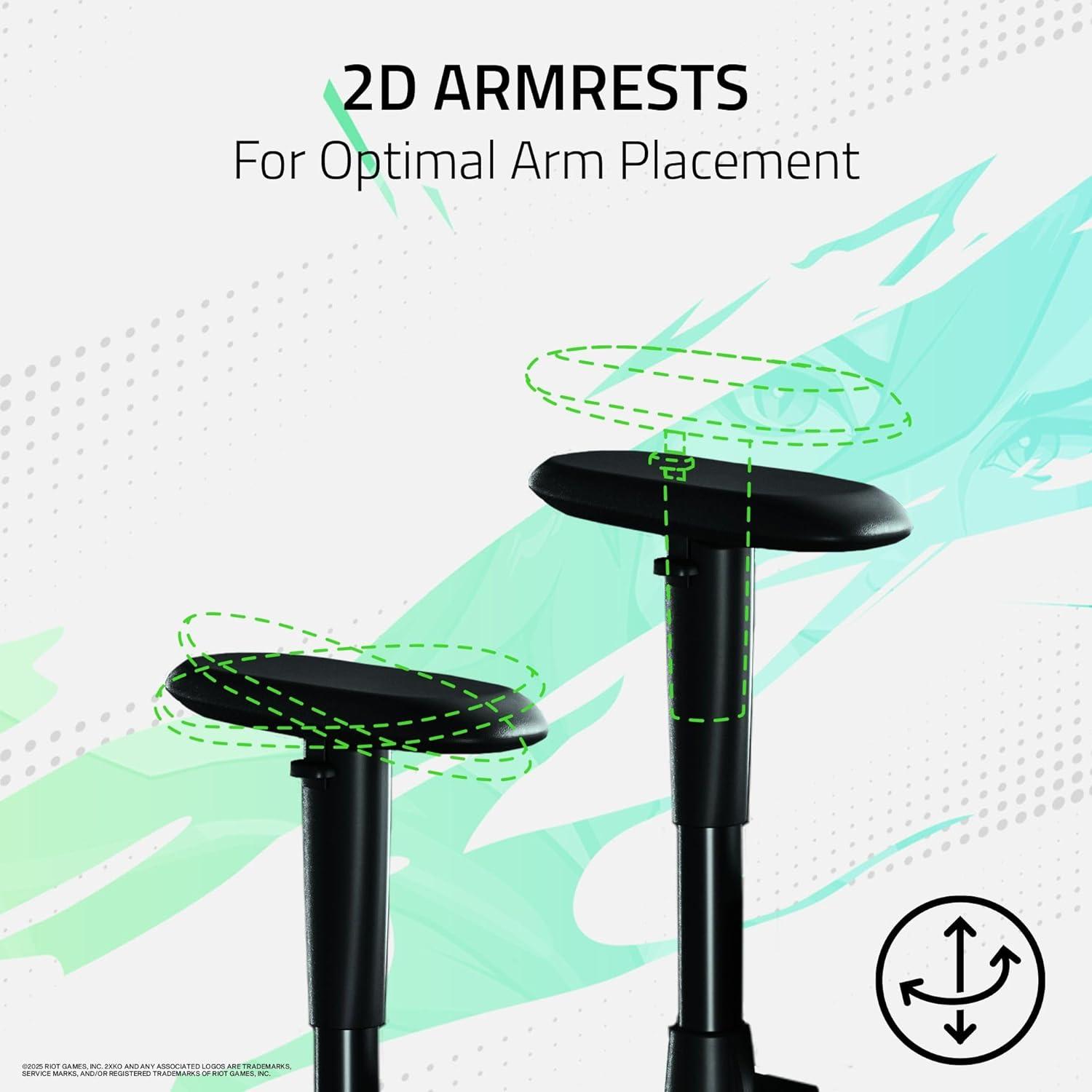 Gain the backing of champions with the Razer Iskur V2 X – 2XKO Edition, an ergonomic gaming chair built for long-lasting support and peak performance. Designed to keep you locked in through every grind, it features a built-in lumbar support system that encourages a neutral posture and reduces back fatigue during extended sessions. Stay comfortable in any position with a widened seat base and reduced edges, sculpted to guide your body toward the center for optimal pressure distribution. The contoured high-density foam cushions mold to your shape, offering superior lower body support and stability. Dial in your comfort with an adjustable 152-degree recline and 2D armrests that adapt to your natural arm placement. Upholstered in plush, breathable fabric, the Iskur V2 X keeps you cool and comfortable while you stay focused on the fight. Whether you're grinding ranked matches or training for your next tournament, the Razer Iskur V2 X – 2XKO Edition is your seat of power—engineered for endurance, tuned for victory.