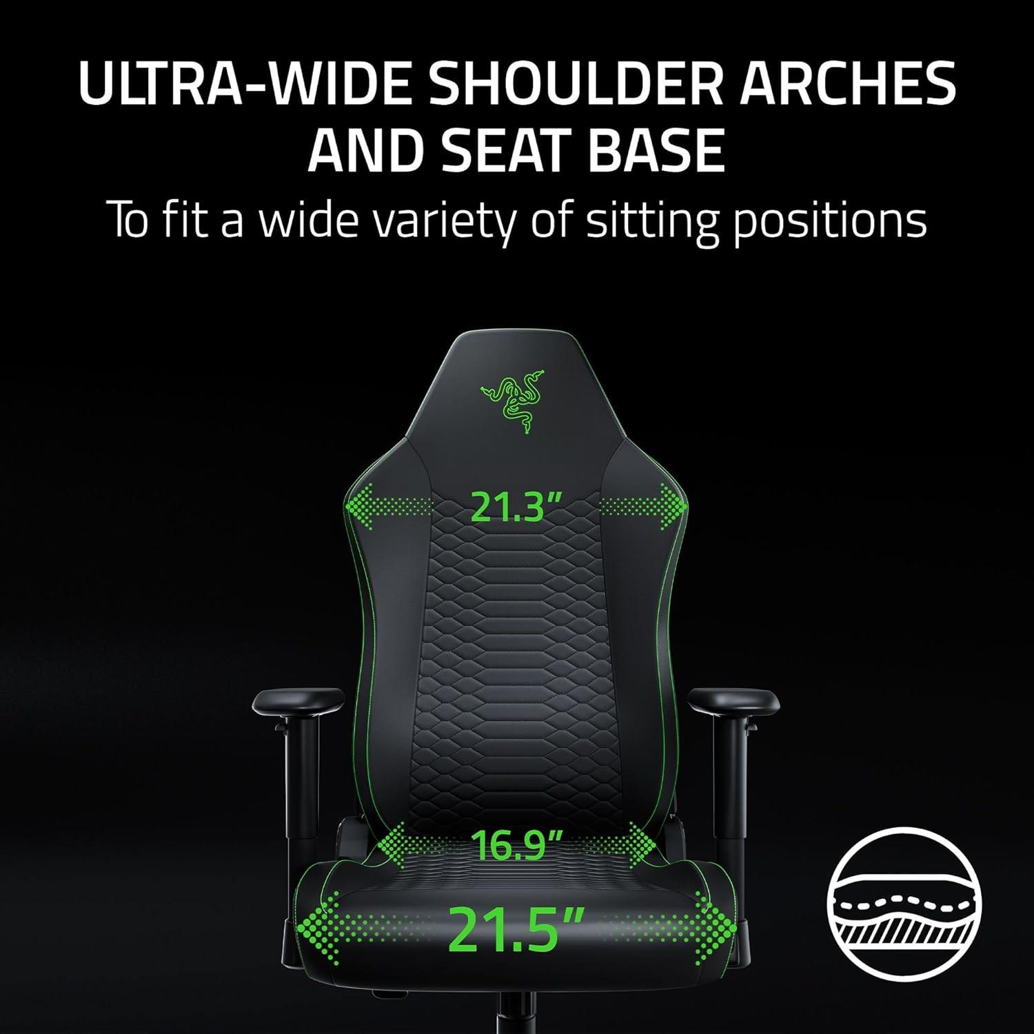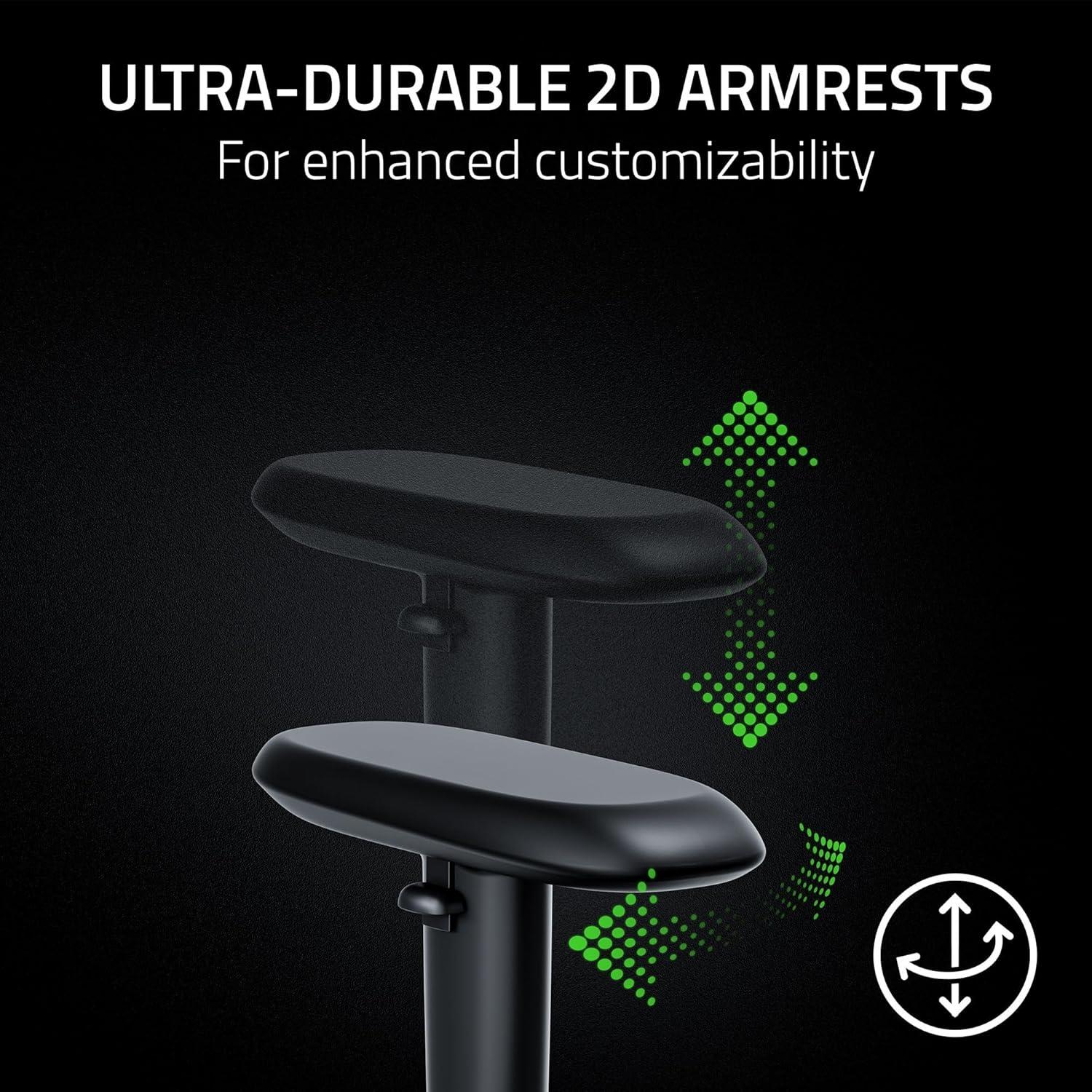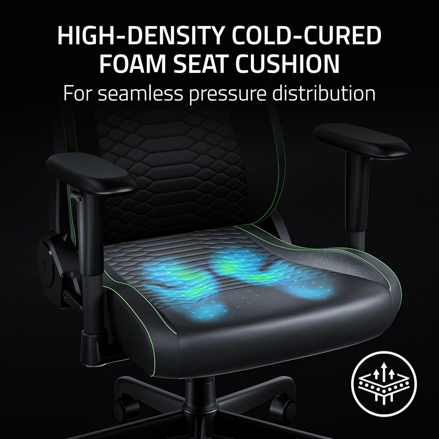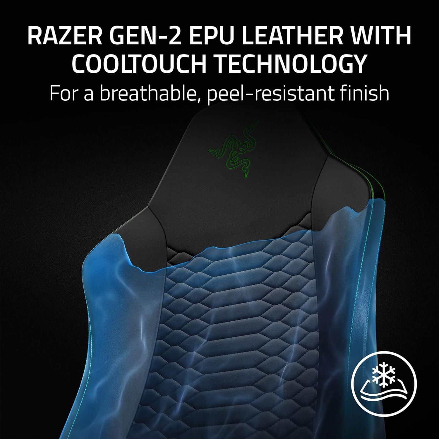 RAZER GEN-2 EPU LEATHER WITH COOLTOUCH TECHNOLOGY — Stay cool and comfortable with CoolTouch technology that offers high thermal effusivity and 13x more durability than standard PU leather for a premium, long-lasting finish