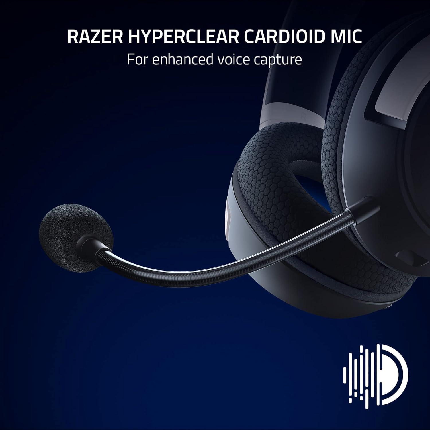 RAZER HYPERCLEAR CARDIOID MIC — Always be heard loud and clear with the bendable mic has been fine-tuned to suppress background noise from the back and sides for greater voice isolation