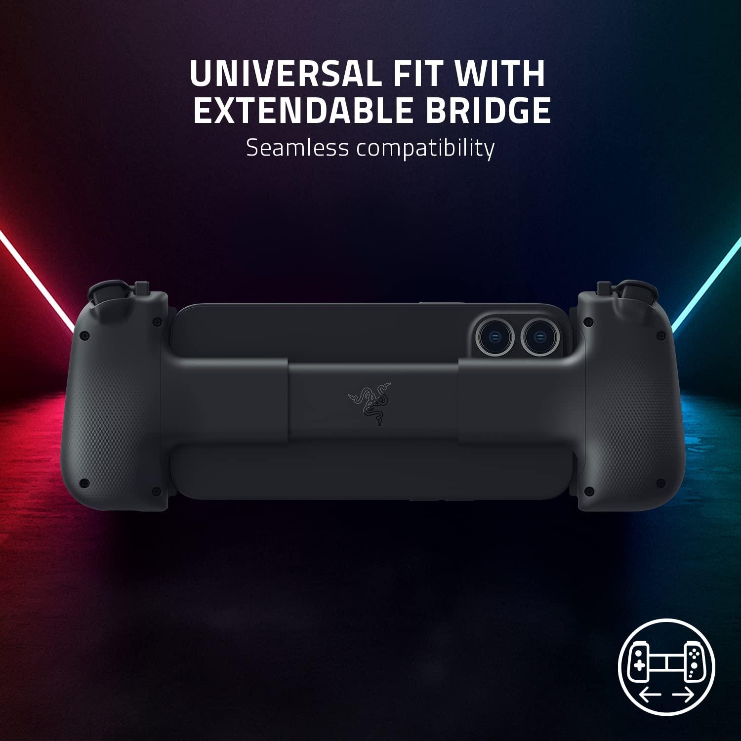UNIVERSAL FIT WITH EXTENDABLE BRIDGE — Features a stable, extendable bridge that perfectly holds the most popular Android smartphones, providing a secure fit that won’t come loose while gaming