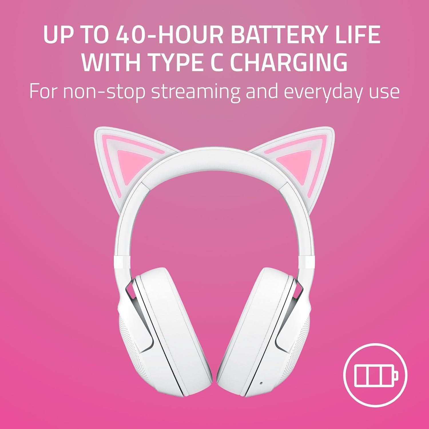 Razer Kraken Kitty V2 BT Wireless RGB Headset: Chroma RGB Kitty Ears & Earcups - Bluetooth 5.2-40 mm Drivers - Noise-Cancelling Mics - Lightweight - 40 Hr Battery w/Type C Charging - Black(White)