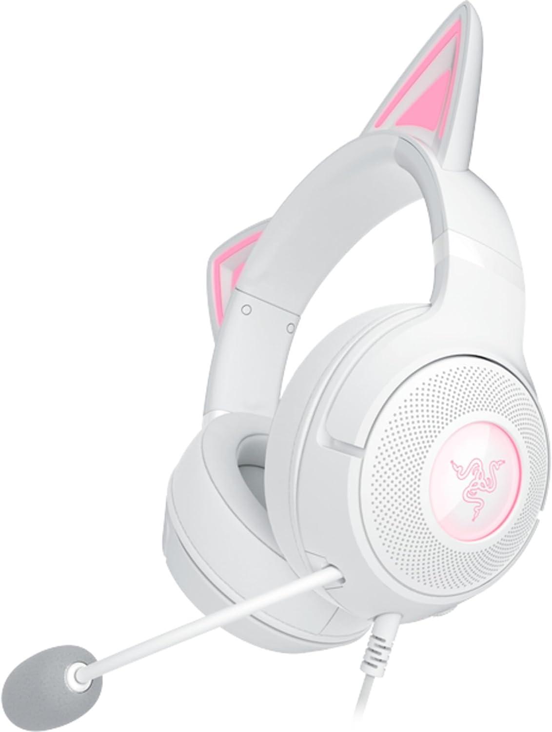 Razer Kraken Kitty V2 USB Wired Headset: Chroma RGB Kitty Ears – Stream Reactive Lighting – HyperClear Cardioid Mic – 40 mm Drivers – 7.1 Surround Sound – Comfortable Ear Cushions – White(White)