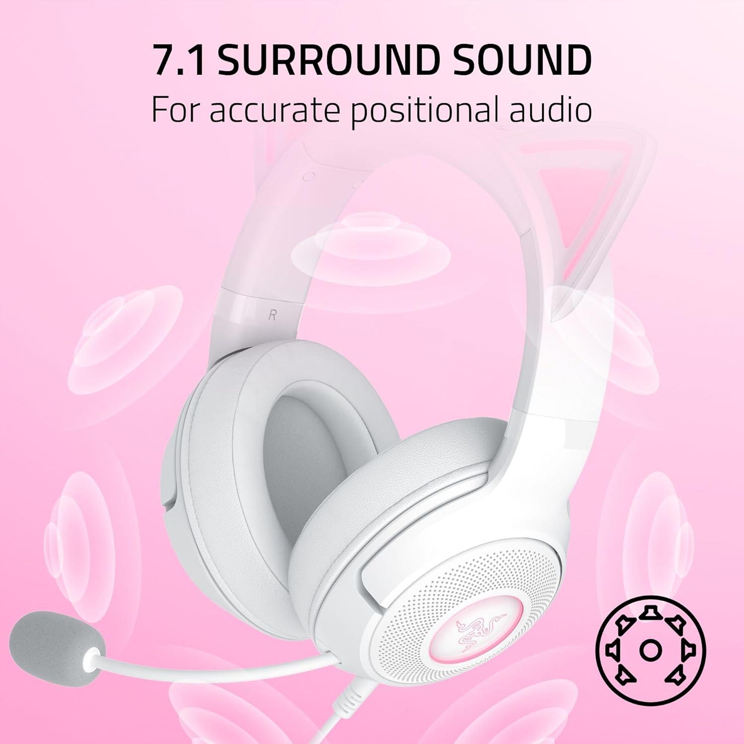 imageRazer Kraken Kitty V2 USB Wired Headset Chroma RGB Kitty Ears  Stream Reactive Lighting  HyperClear Cardioid Mic  40 mm Drivers  71 Surround Sound  Comfortable Ear Cushions  WhiteWhite