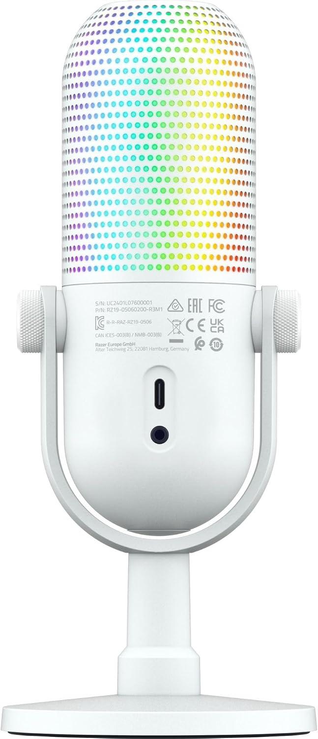 Razer Seiren V3 Chroma RGB USB Microphone: Stream & Game Reactive Lighting - Tap-to-Mute Sensor - Condenser Mic - Digital Gain Limiter & Shock Absorber - PC, Discord, OBS Studio, XSplit - Black(White)