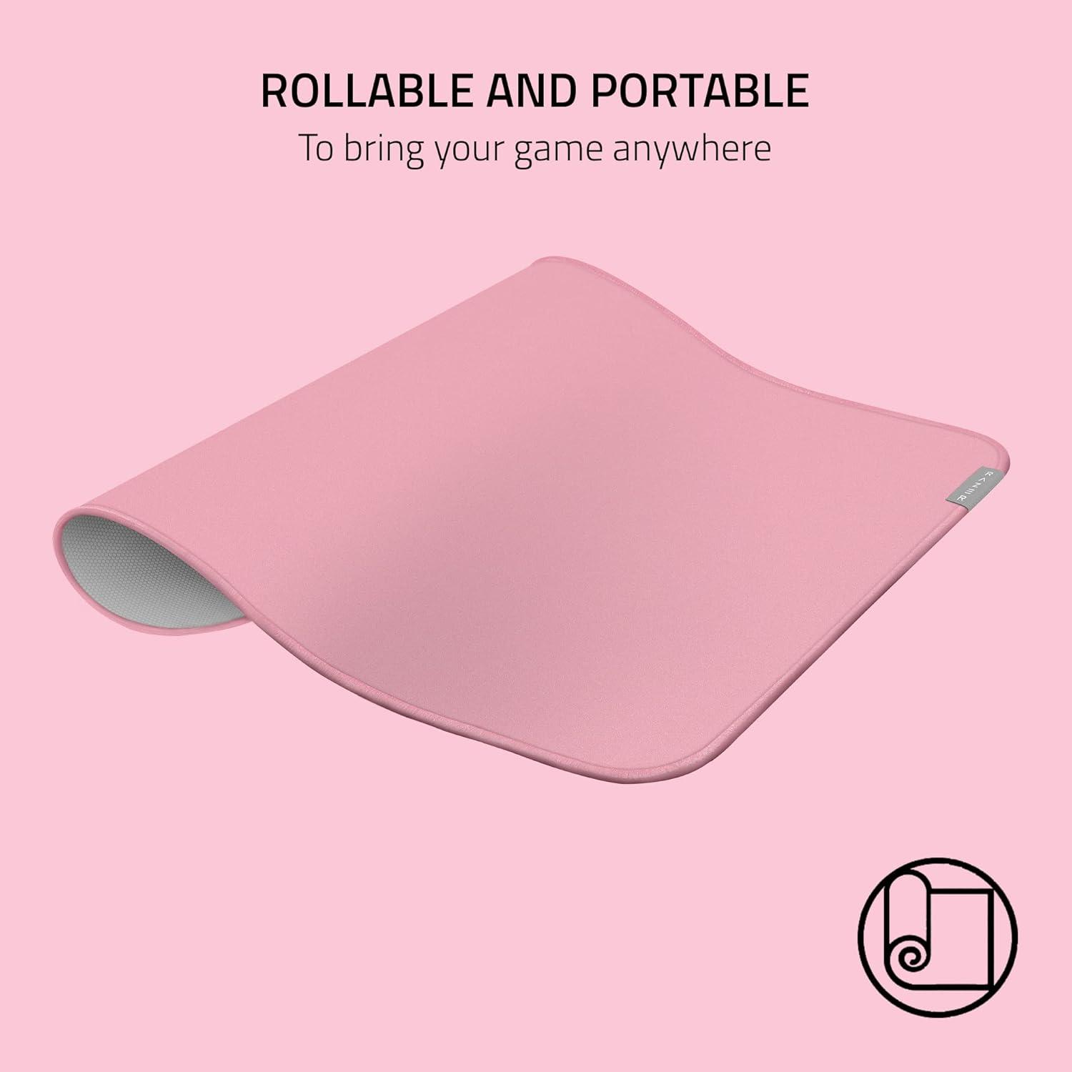 Razer Strider Hybrid Mouse Mat with a Soft Base & Smooth Glide: Firm Gliding Surface - Anti-Slip Base - Rollable & Portable - Anti-Fraying Stitched Edges - Water-Resistant - Large(Quartz Pink)