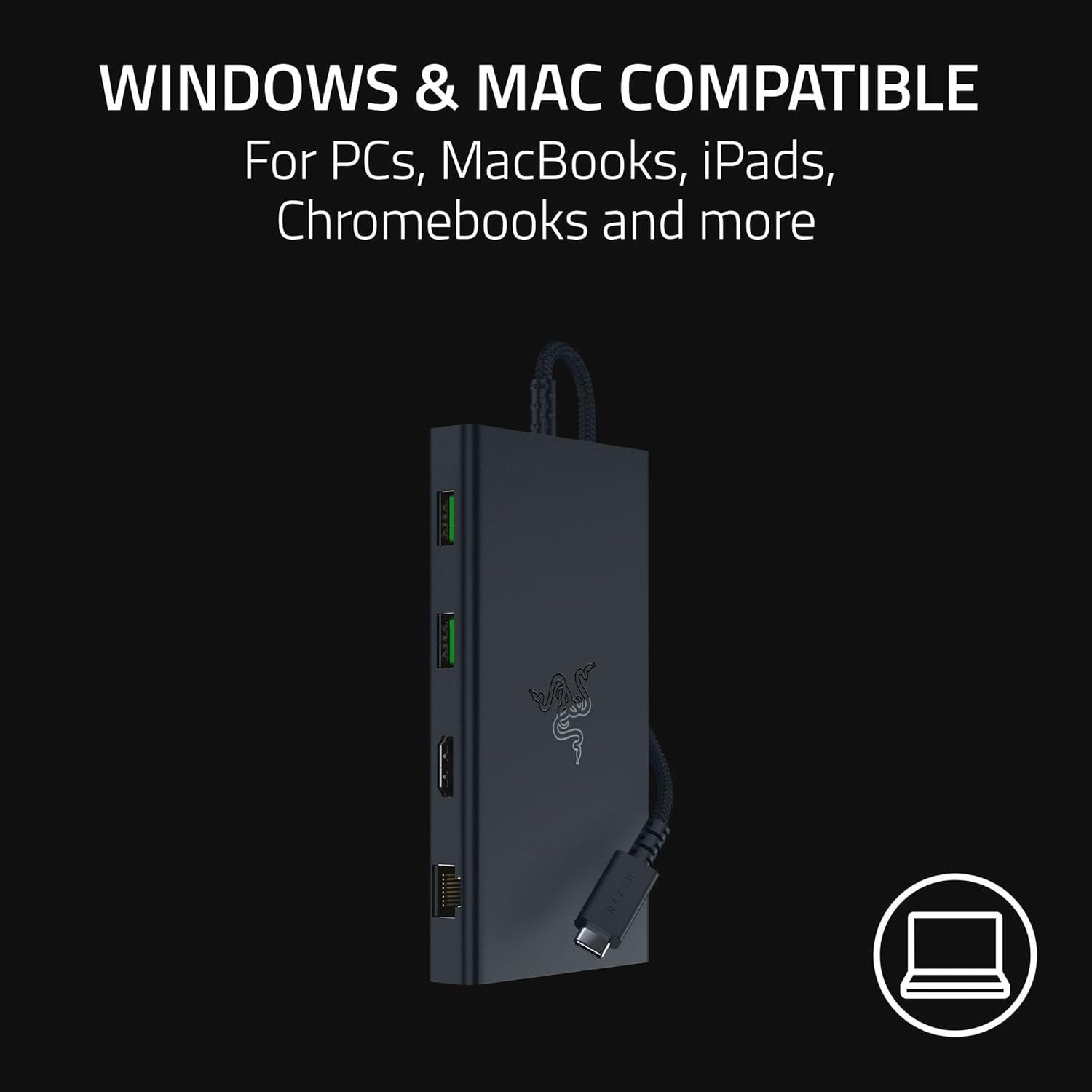 WINDOWS & MAC COMPATIBLE — Razer USB C Dock adds tons of port connectivity to almost any device, whether it be a Windows PC, Mac, iPad, or Chromebook. Designed to complement both desktop setups and on-the-go travellers