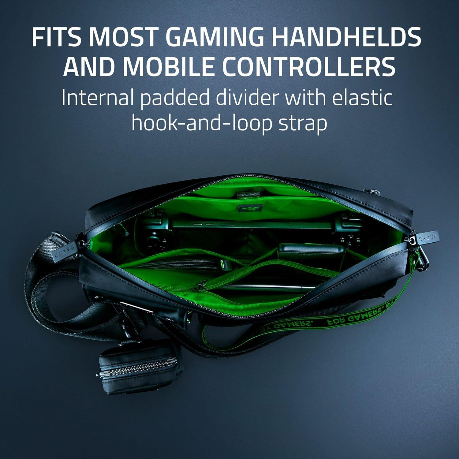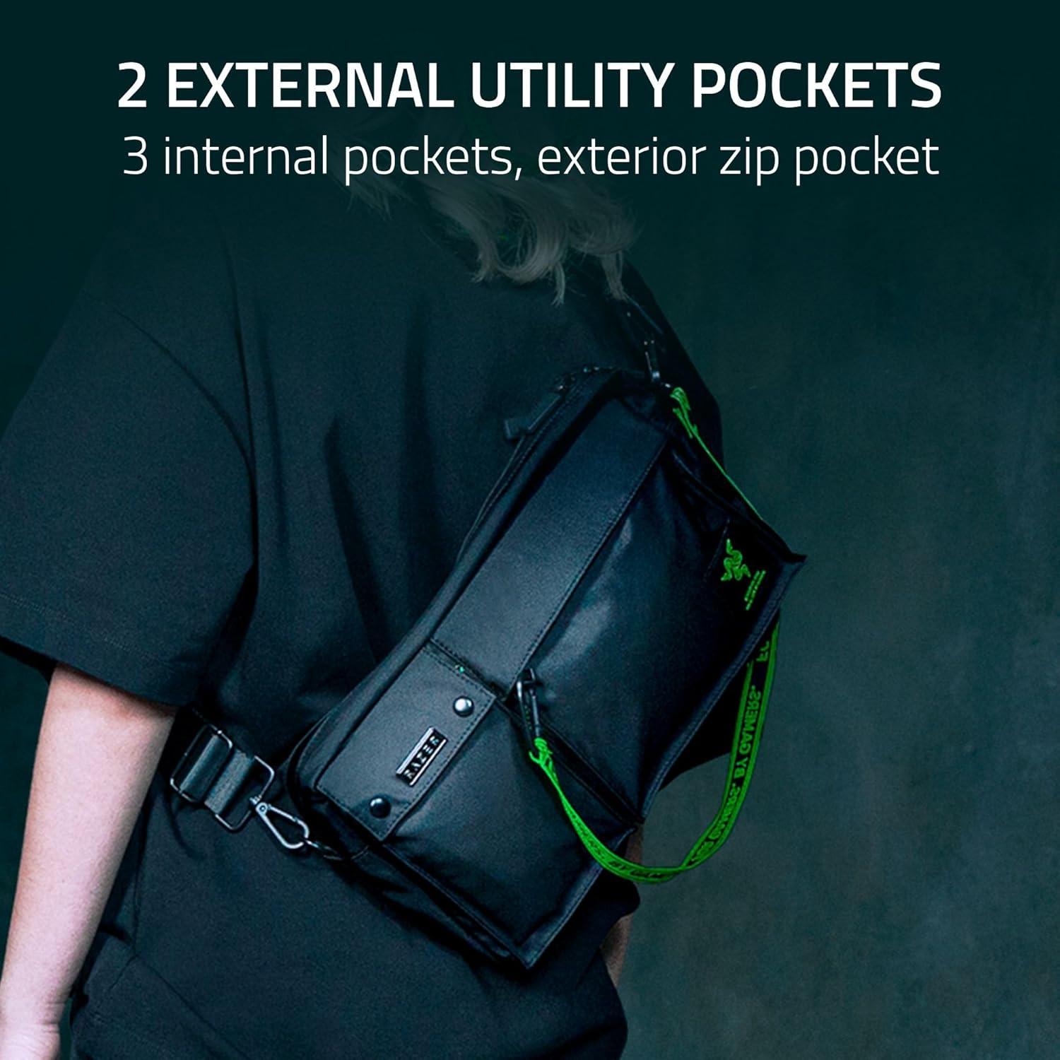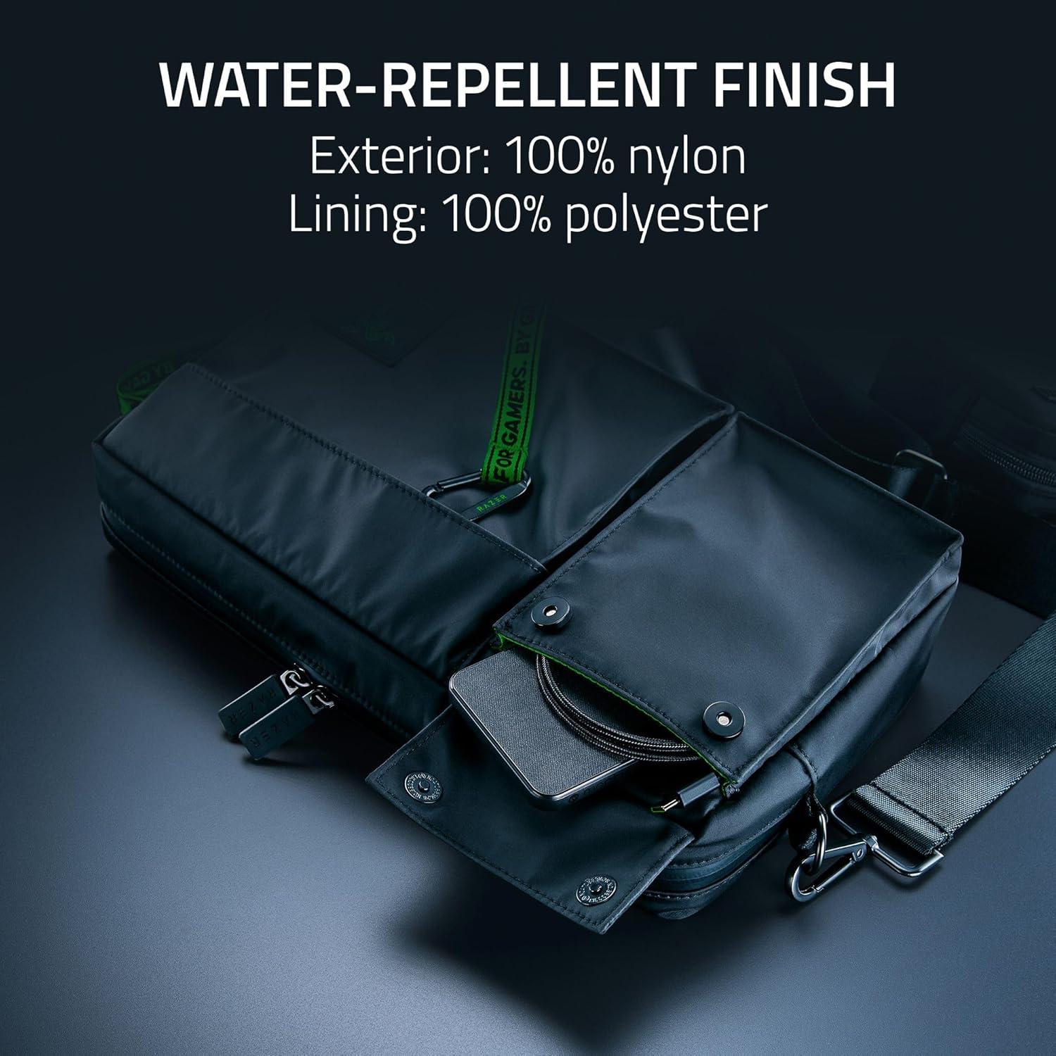 RAZER SYMBOL – Engraved Razer-branded metal tag on pocket flap and mini pouch + Razer logo patch on the front pocket